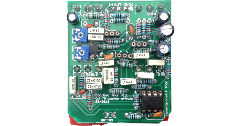 This is my PCB for runoffgroove’s Thor overdrive. Here is the link to ROGs project and their soundfiles. The Thor is modeled after a Marshall 100W super lead amp. This circuit enhances the original build by adding a Bandaxall tonestack and a lead-channel-mod. Board mounted pots can be used to make the build easier. V1.1 […]
